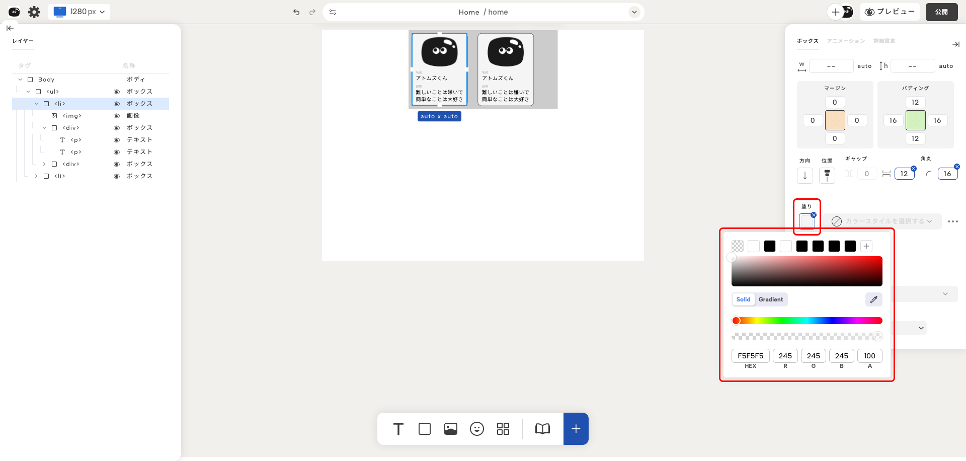 いいね!じゃあ、デザイン設定を使って、実際にボックスを装飾していこう。