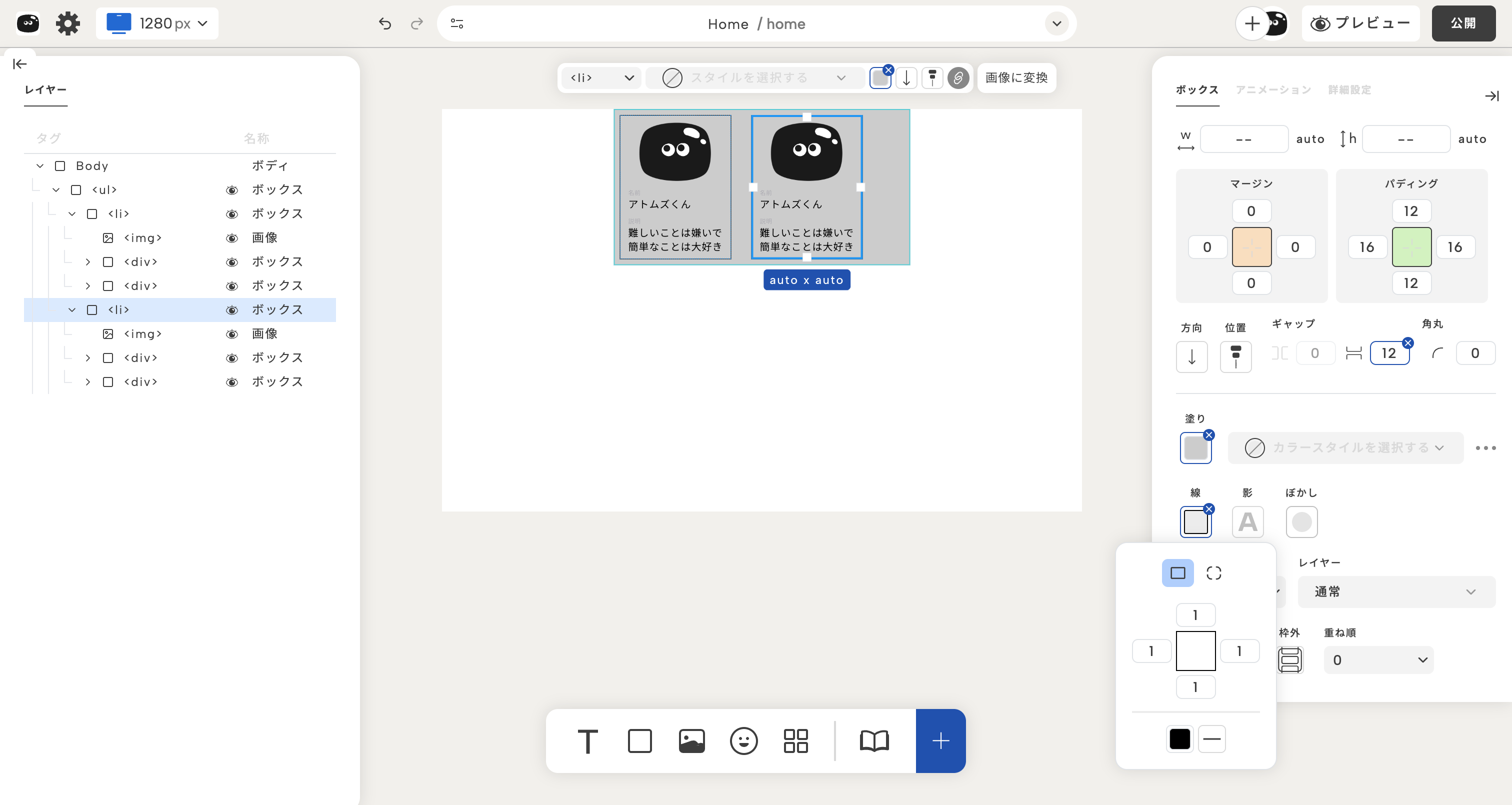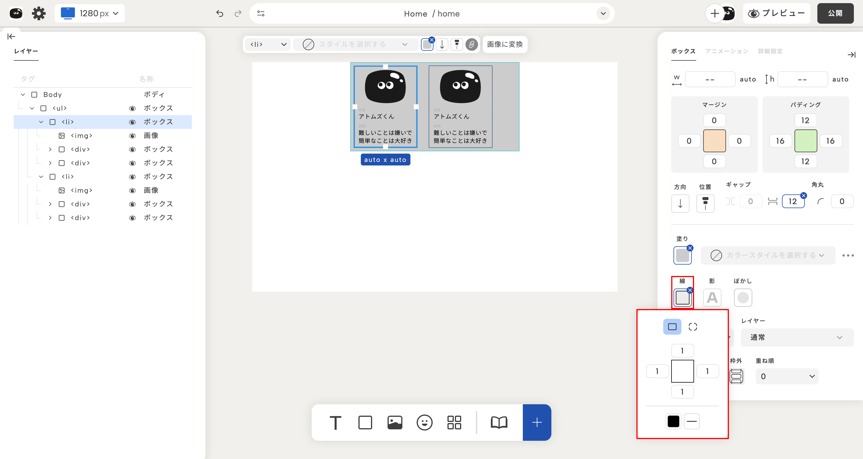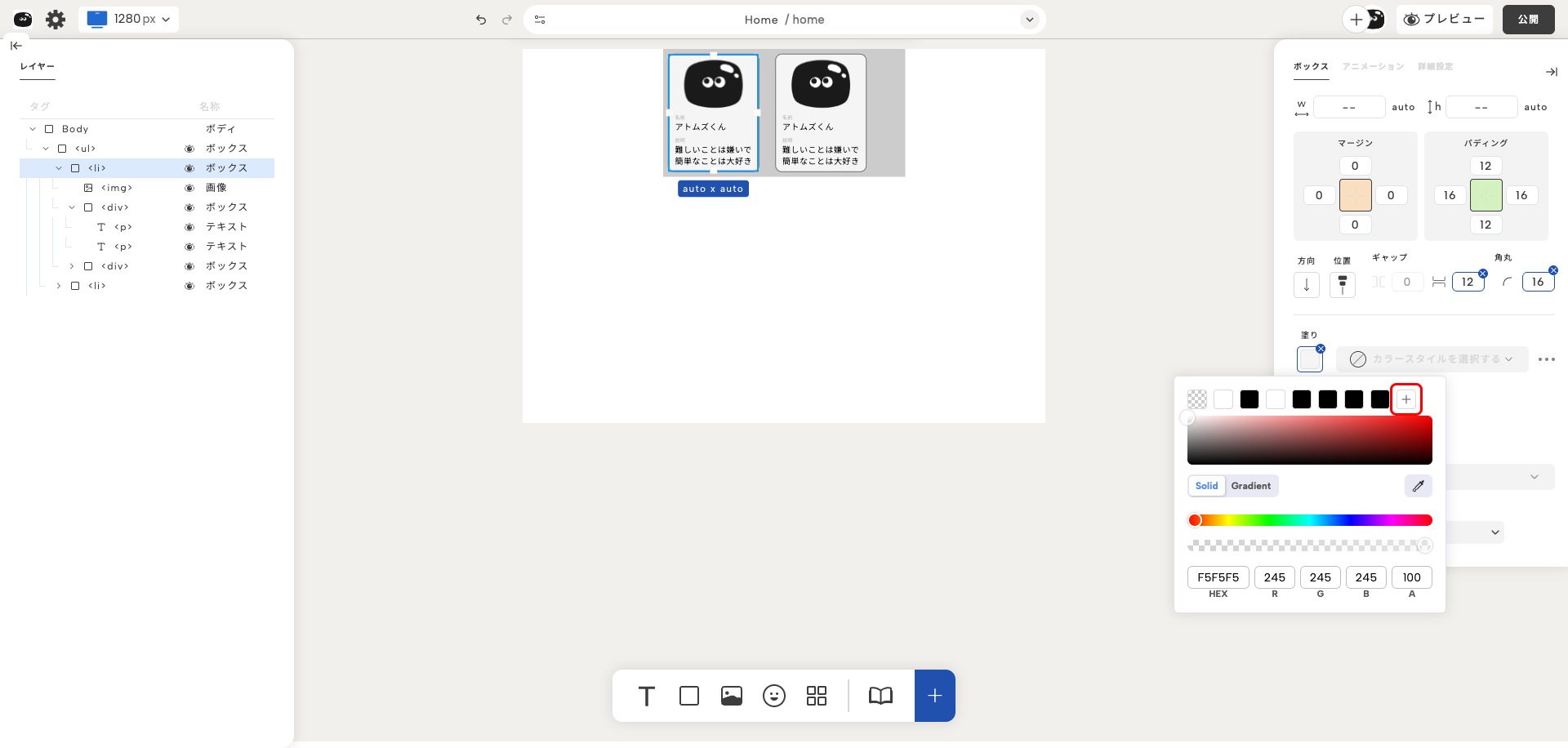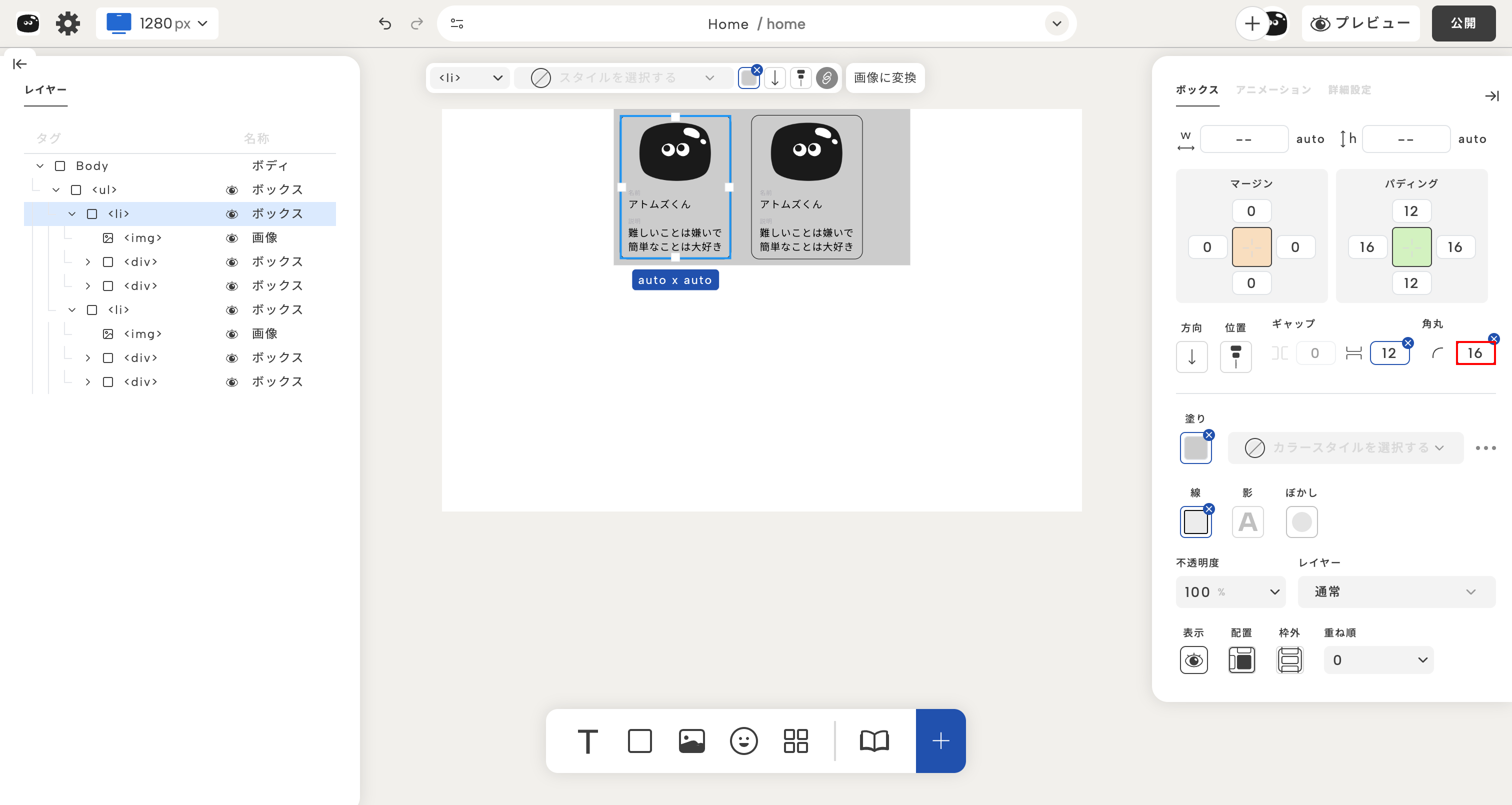 次は角を丸くしてみよう。角丸の数値を16pxに設定してみて。