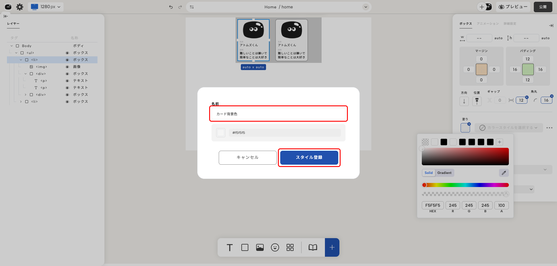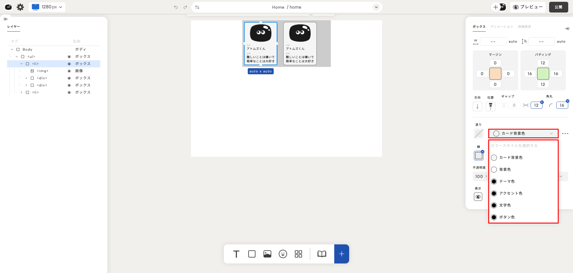 カラースタイル一覧を見てみよう。「カード背景色」が追加されているはずだよ。