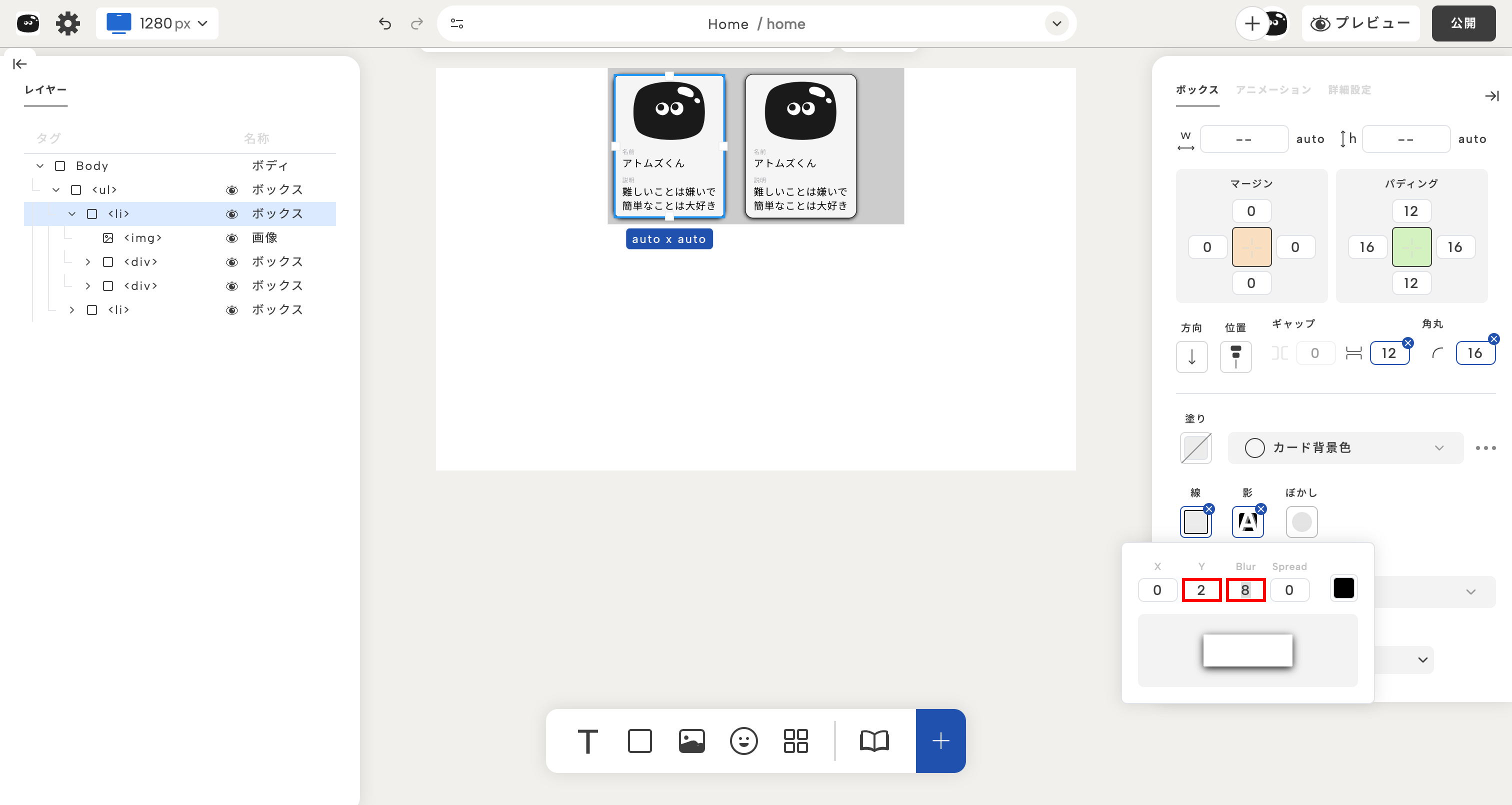 いい感じでしょ?これでカード風のデザインが完成だね。