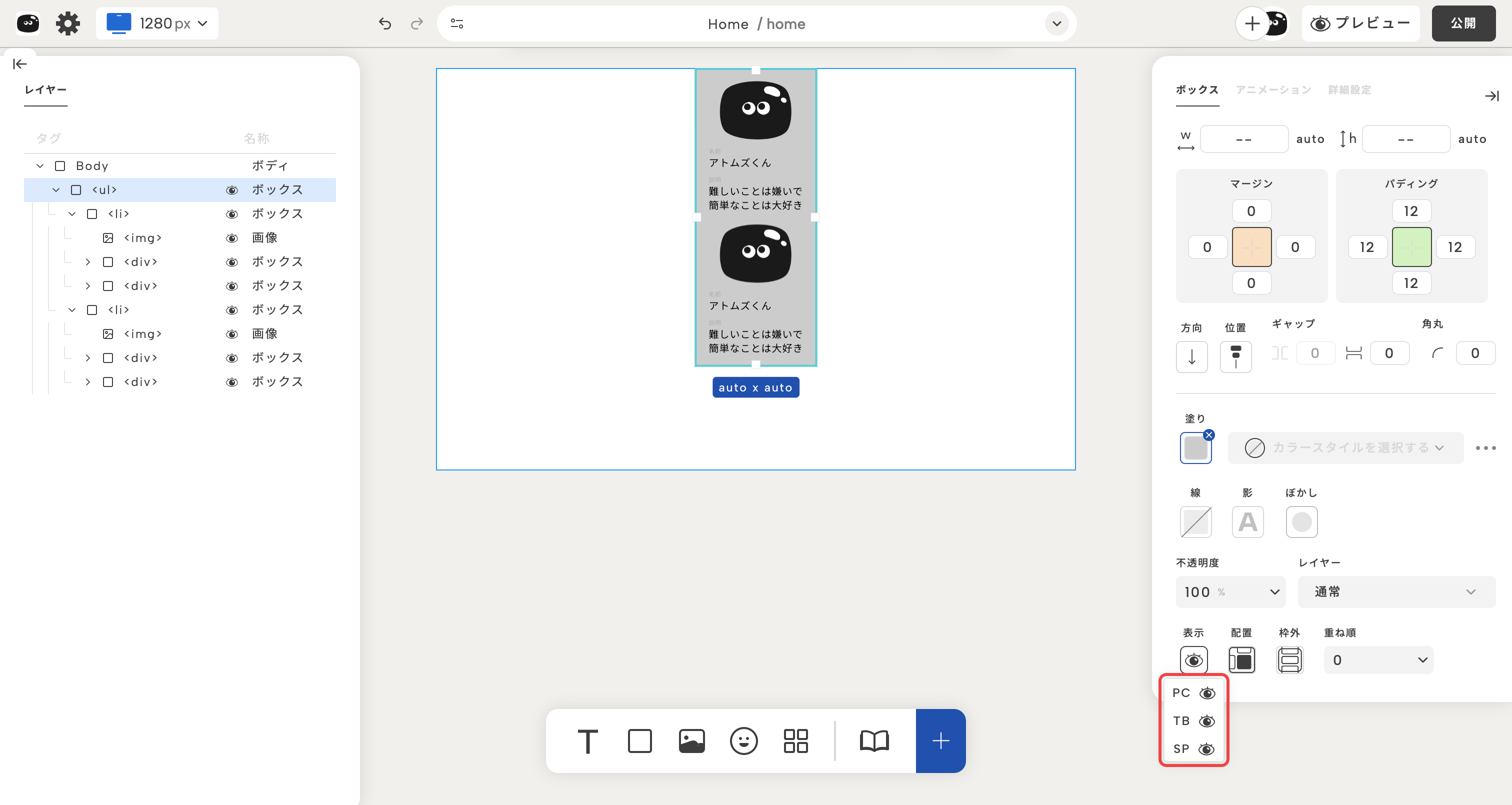 | TB | タブレット | iPadやタブレット端末での表示 |