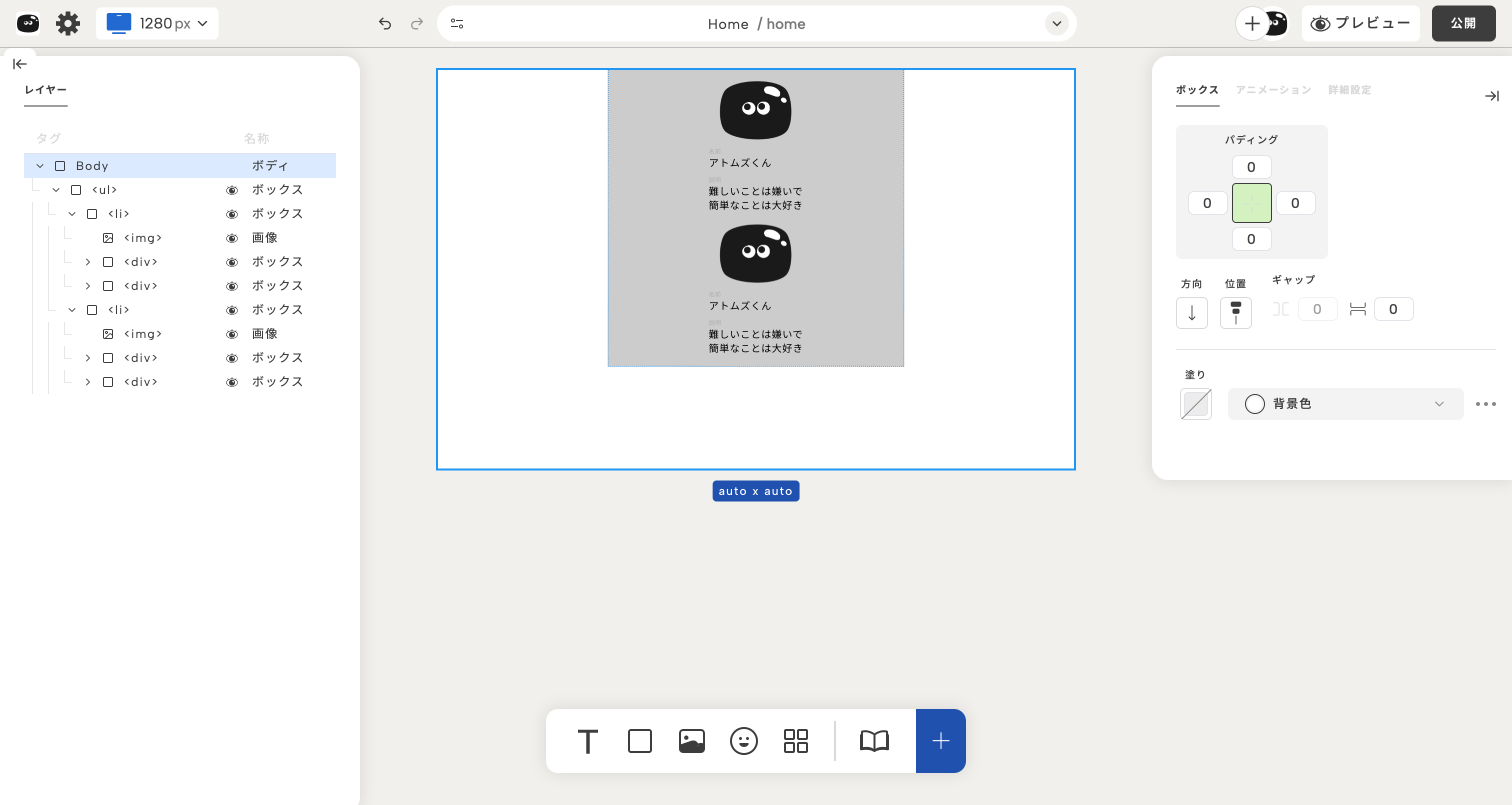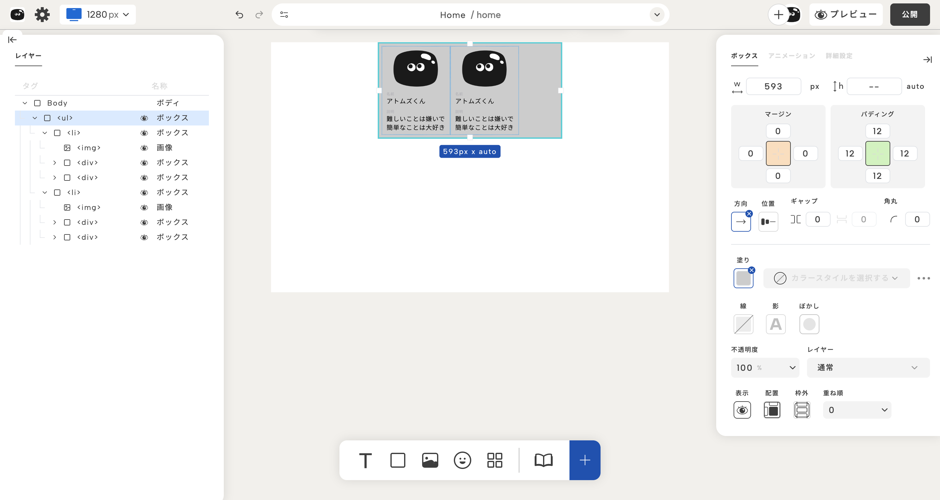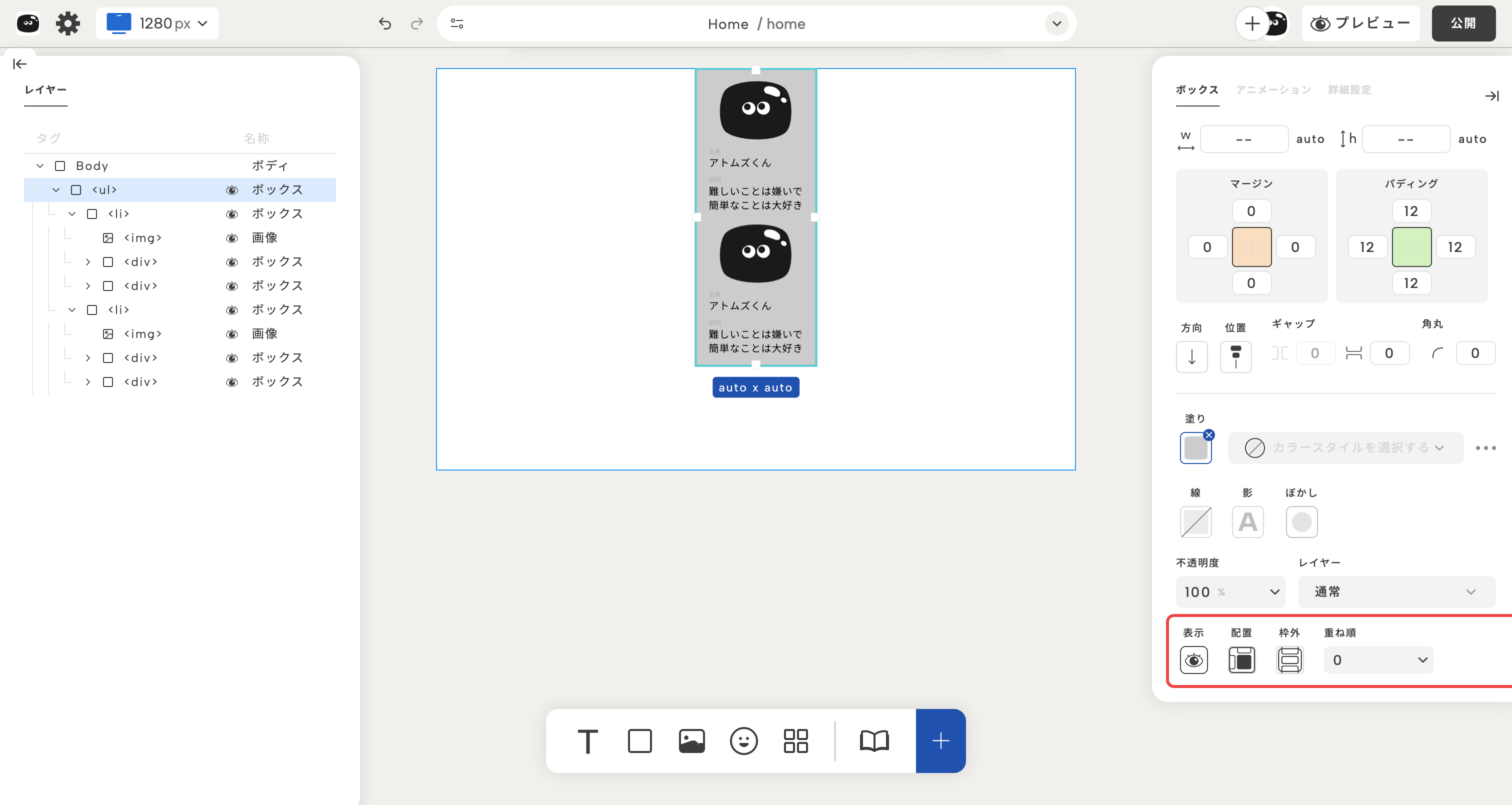 ボックスのレイアウト
