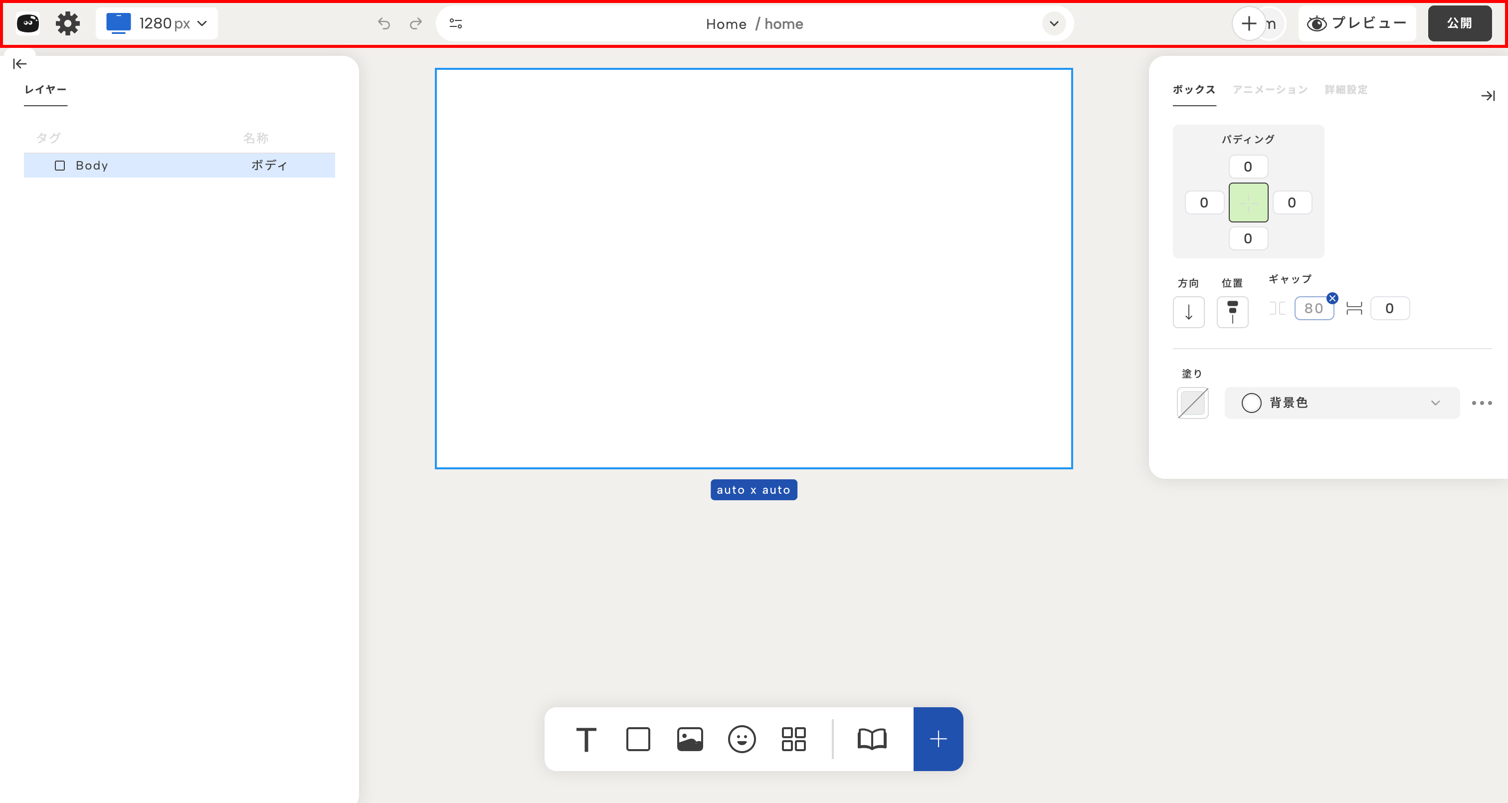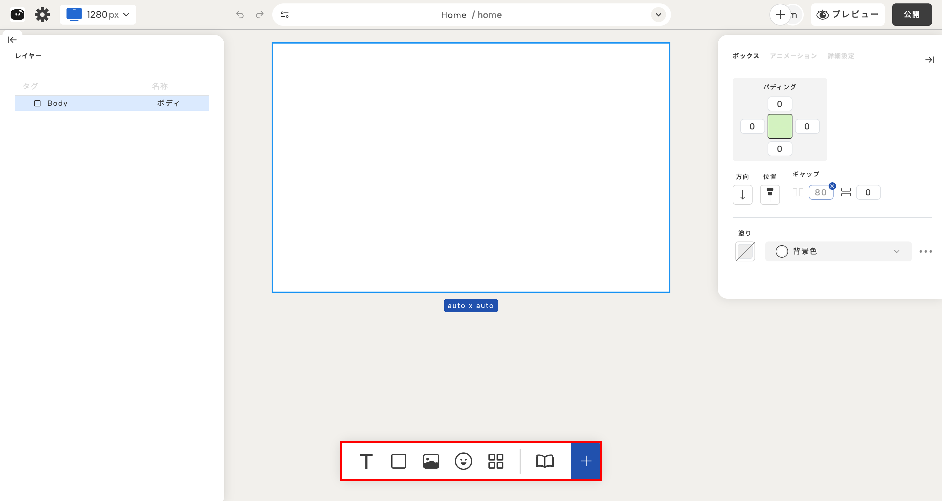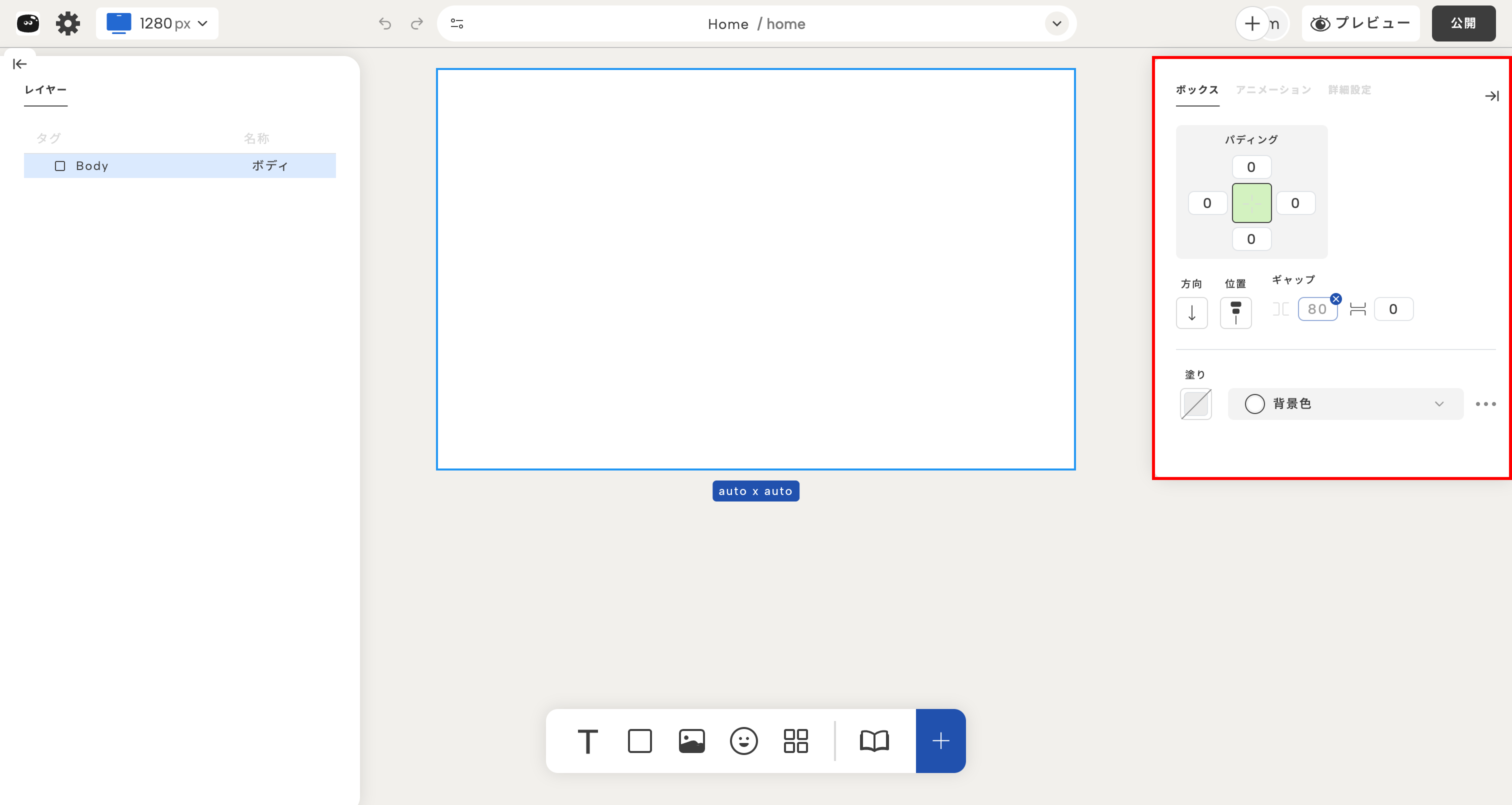 | プロパティパネル(右) | 選択した要素のスタイルや設定を変更 |
