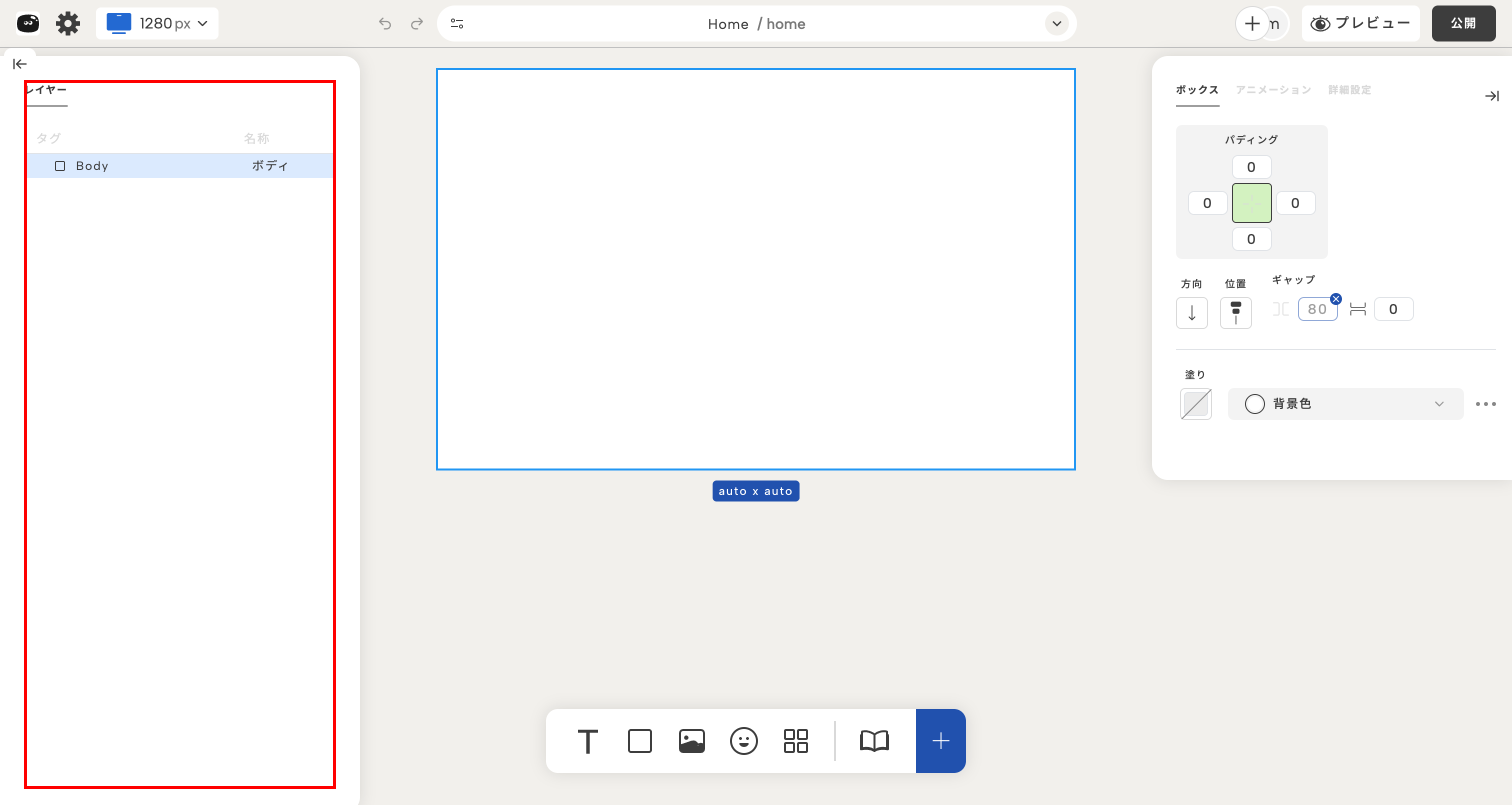 | レイヤーパネル(左) | ページ内の要素を階層構造で表示・管理 |