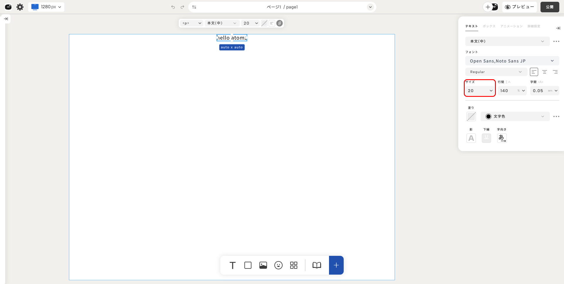 サイズ、行間、字間の3つを調整できるよ。