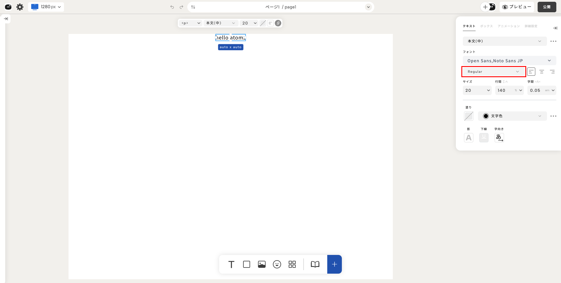 右パネルのフォントセクションの「Regular」部分(赤枠)で設定するんだ。