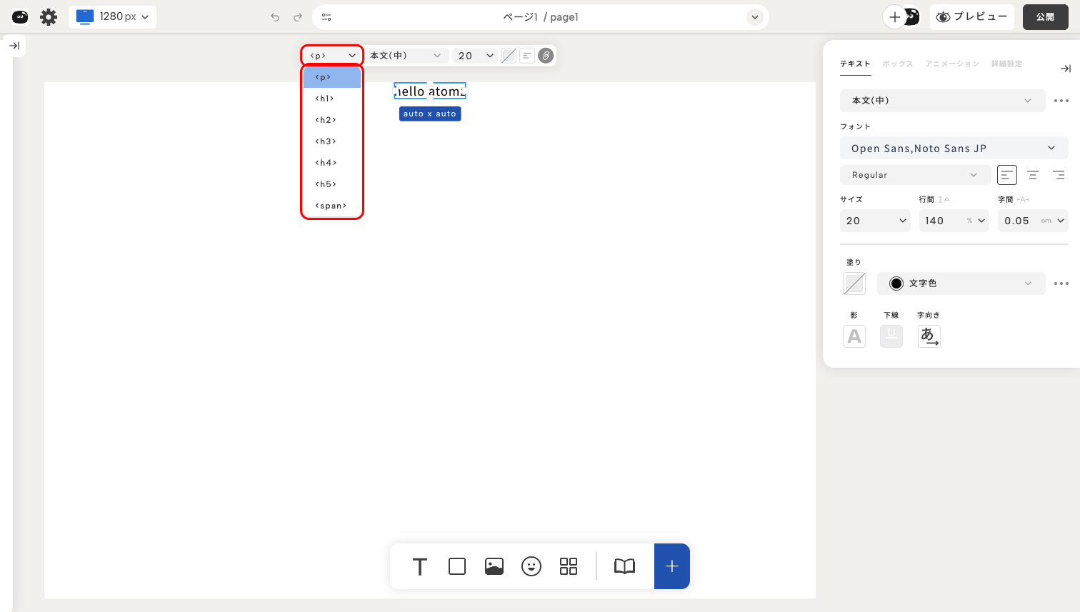 見出しには h1〜h6、本文には p を使うことで、