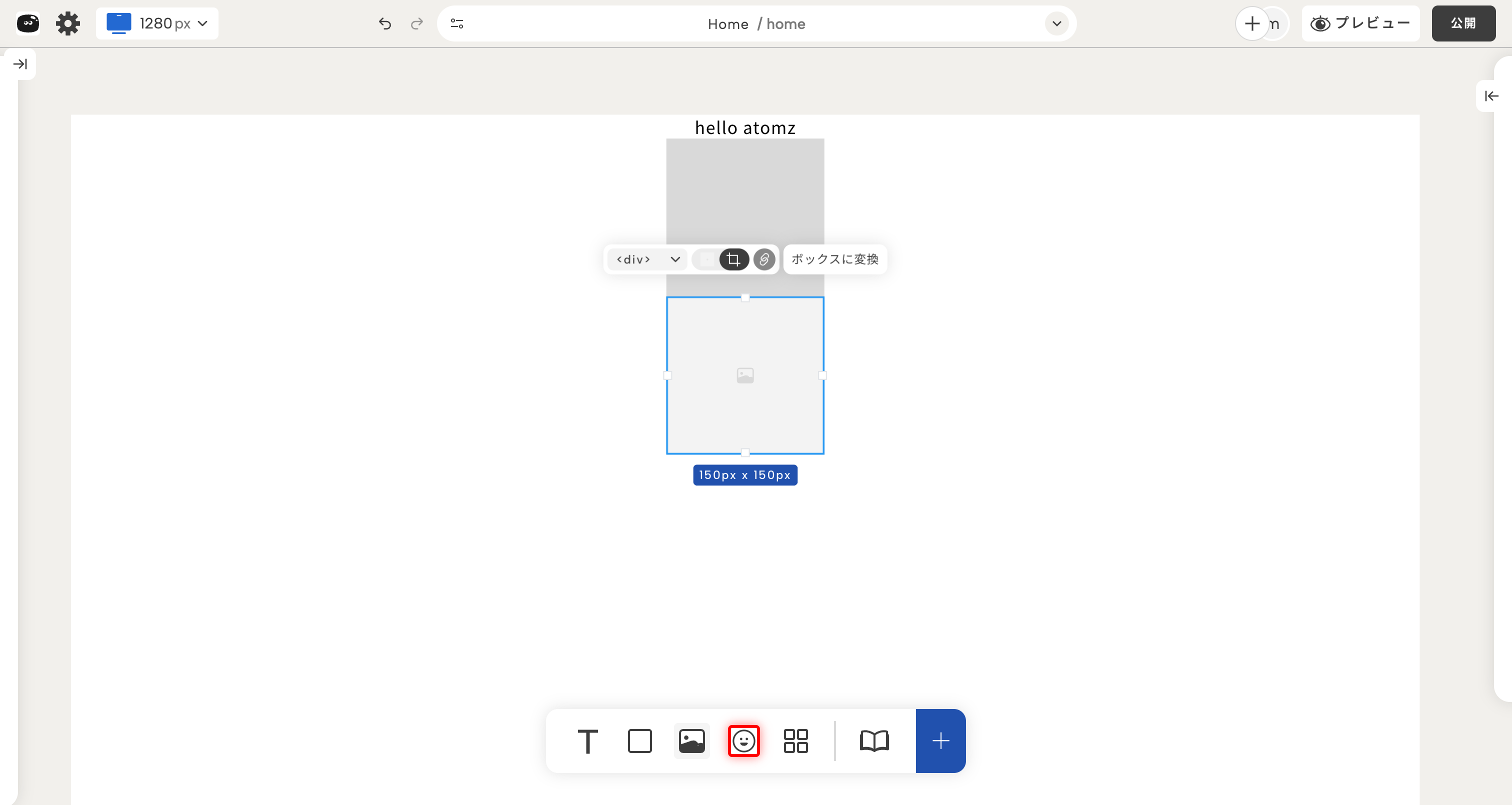 アイコンも簡単に追加できるよ!顔のマークのアイコンをクリックしてみよう。